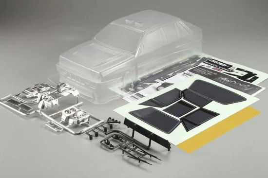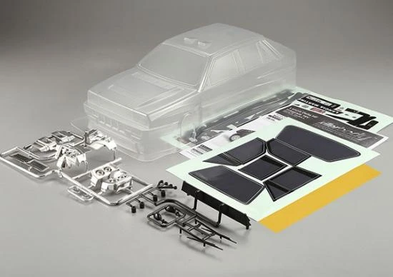 Clear unpainted Lancia Delta HF Integrale 16V bodyshell.